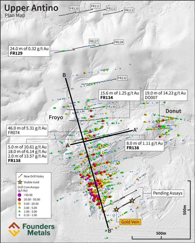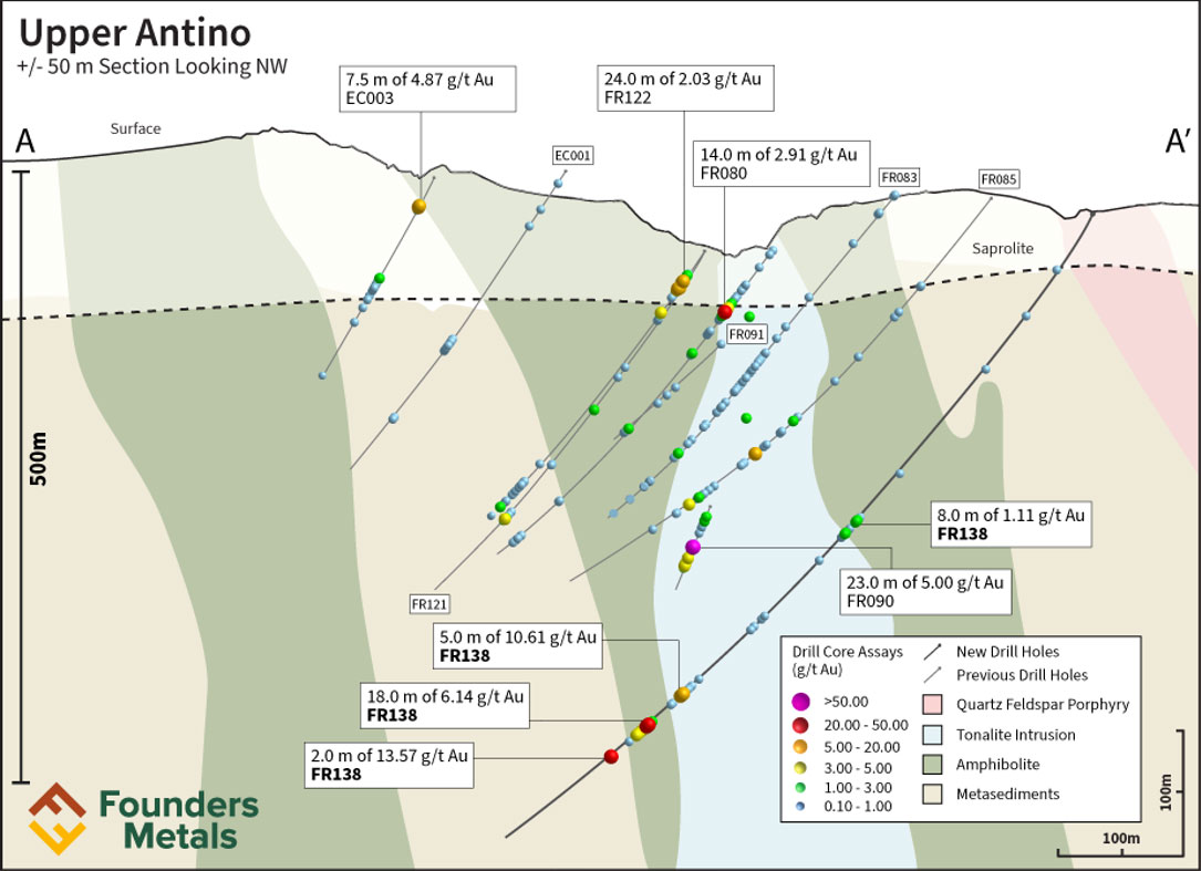 Founders Metals Hits Deep High-Grade Mineralization at Upper Antino; 18.0 m of 6.14 g/t Gold from 450 m